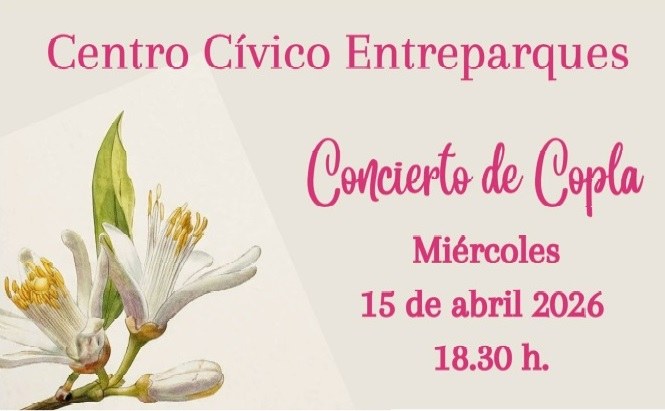 CONCIERTO DE COPLA https://www.femas.es/centros-civicos/entreparques/eventos/concierto-copla CONCIERTO DE COPLA 2026-04-15T18:30:00+02:00 2026-04-15T23:59:59+02:00 Ver todo Centro Cívico Entreparques Detalles del evento Qué Centro Cívico Entreparques Cuándo 15/04/2026 a partir de 18:30 Dónde Centro Cívico Entreparques Agregar evento al calendario iCal Acciones de documento Imprimir Enviar Compartir Compartir en facebook Compartir en twitter Compartir en linkedin Compartir en whatsapp