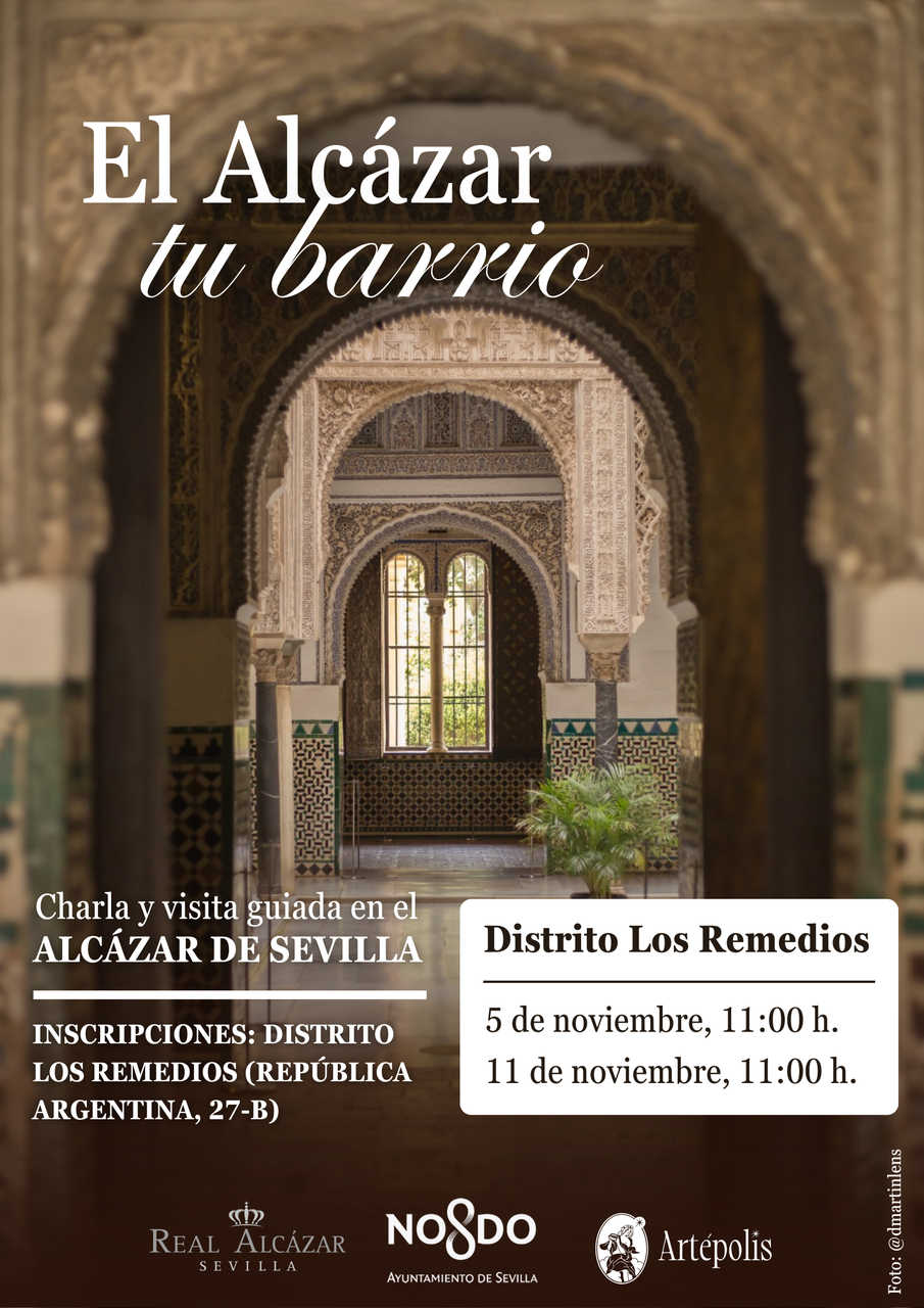 El Distrito Los Remedios, en colaboración con el Real Alcázar de Sevilla, vuelve a organizar la visita cultural "EL ALCÁZAR, TU BARRIO", esta actividad se llevará a cabo los días miércoles 5 de noviembre y martes 11 de noviembre de 2025.