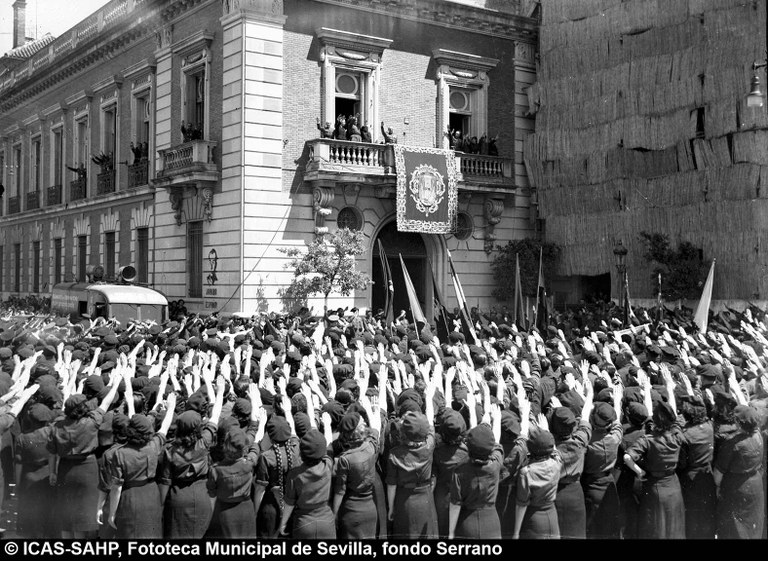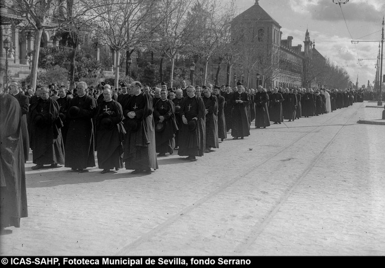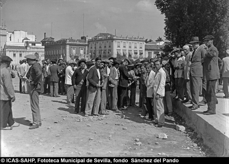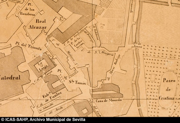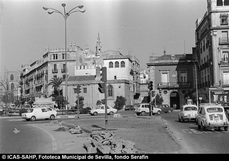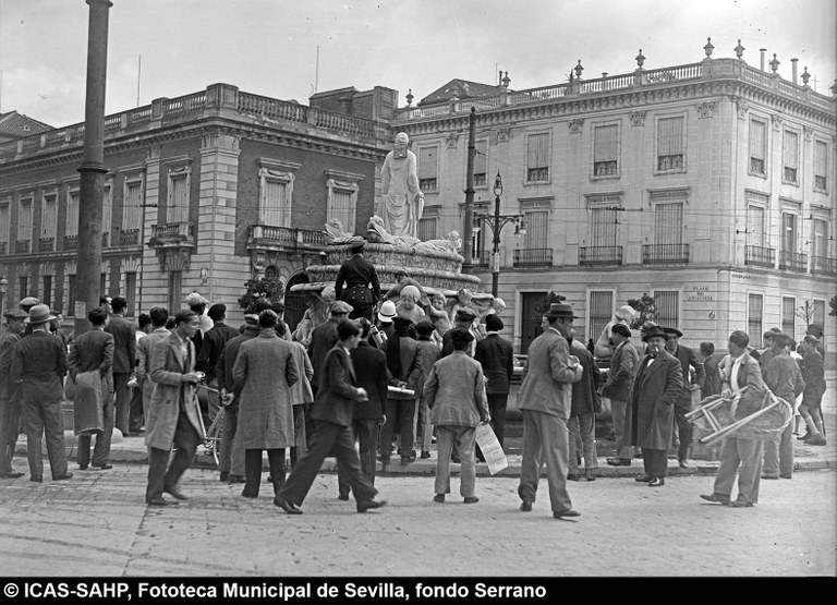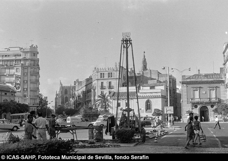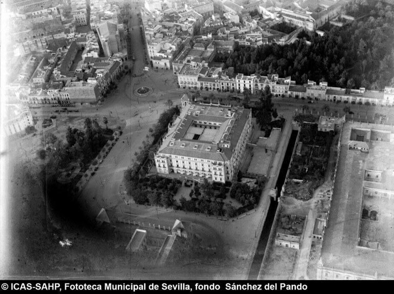 Galería fotográfica Detalle del plano de 1848 en el que se aprecia el entorno de la Puerta de Jerez junto al arroyo Tagarete. Ésta fue derribada con los paños de muralla ... Entorno de la Puerta de Jerez por el que circula un tranvía de mulas. Al fondo, el antiguo palacio de los Vicentelo de Leca, propiedad de los condes ... El teatro de verano Eslava en los jardines del mismo nombre fue construido en 1887 por Antonio Capó sobre el anterior del mismo nombre y clausurado ... Embocadura de la calle San Fernando hacia la Puerta de Jerez. En el centro el antiguo palacio de los Vicentelo de Leca, entonces Intendencia Militar ... Tranvía eléctrico con jardinera circulando por la Puerta de Jerez esquina a la calle Almirante Lobo. Bajo el pavimento discurría ya el arroyo ... Vista aérea de la Puerta de Jerez y el hotel Alfonso XIII tras las obras de ensanche y derribo de las manzanas de edificios de la calle Maese Rodrigo ... La fuente de Híspalis, encargada por el Ayuntamiento en 1928 al escultor Manuel Delgado Brackenbury y diseñada por Juan Bautista Míguez Roca. Fue ... La fuente de Híspalis, encargada por el Ayuntamiento en 1928 al escultor Manuel Delgado Brackenbury y diseñada por Juan Bautista Míguez Roca. Fue ... Manifestación de obreros en paro durante el reparto de bonos en el Paseo de Cristina. 26 de septiembre de 1931 ©ICAS-SAHP, Fototeca Municipal de ... Fachada de la Casa-Palacio de los Guardiola. La casa que perteneció a Andrés Parladé y Sánchez de Quirós, conde de Aguiar, fue construida por los ... Manifestación espontánea contra Manuel Azaña en la Puerta de Jerez. 8 de abril de 1934. ©ICAS-SAHP, Fototeca Municipal de Sevilla, fondo Serrano Francisco Franco a su llegada al cuartel general en el Palacio de Yanduri el 7 de agosto de 1936. Se trata del primer cuartel general de Franco en ... Salida de tropas hacia el frente a su paso por la Puerta de Jerez. 1936-1937. ©ICAS-SAHP, Fototeca Municipal de Sevilla, fondo Serrano Celebración del final de la Guerra Civil el 17 de abril de 1939. Francisco Franco saluda desde el balcón del Palacio de Yanduri a un grupo de la ... Apertura de los actos de la Semana de la Santa Misión. Procesión misional de la comitiva que había partido del Seminario en el Palacio de San Telmo. ... Inundación de la Puerta de Jerez y Avenida de la Constitución por la rotura del muro de contención de las obras de defensa del río Guadaíra. Enero de ... La nevada del 2 de febrero de 1954 cubrió de blanco la fuente de Híspalis. ©ICAS-SAHP, Fototeca Municipal de Sevilla, fondo Serrano Puerta de Jerez. Obras de mejora en los aledaños de los jardines de Cristina. 1955-1959 ©ICAS-SAHP, Fototeca Municipal de Sevilla, fondo Gelán Coronación canónica de María Auxiliadora de los Salesianos de la Santísima Trinidad. Acto oficiado por el cardenal Pedro Segura en la Puerta de ... Tranvía con remolque a su paso por Puerta de Jerez. 1957-1959. Los últimos tranvías circularon en Sevilla en 1960. ©ICAS-SAHP, Fototeca Municipal de ... La escultura de San Cristobal, obra de Martínez Montañés de la Iglesia del Salvador es portada en un jeep militar hacia el Parque de Mª Luisa con ... Caseta del Centro Meteorológico Nacional en las inmediaciones de la Puerta de Jerez. 1959 ©ICAS-SAHP, Fototeca Municipal de Sevilla, fondo Serafín Vista cenital de las inmediaciones de la Puerta de Jerez. A la derecha el Hotel Cristina, construido para la Exposición Iberoamericana de 1929. ... Colocación de nuevo alumbrado público en la Puerta de Jerez. 1961-1963 ©ICAS-SAHP, Fototeca Municipal de Sevilla, fondo Serrano La grúa de un camión del Servicio de Bomberos instalando un árbol de Navidad en la Puerta de Jerez. 1965-1970 ©ICAS-SAHP, Fototeca Municipal de ... Clausura de la Santa Misión. Acto celebrado en la Puerta de Jerez y oficiado por el cardenal José María Bueno Monreal y presidido por el paso de la ... Paso del Cristo de la Buena Muerte en su primera salida de los Estudiantes desde la Fábrica de Tabacos. Marzo de 1967 ©ICAS-SAHP, Fototeca Municipal ... Sondeos de prospección para la construcción del metropolitano en Sevilla. Julio de 1968. ©ICAS-SAHP, Fototeca Municipal de Sevilla, fondo Serafín Intenso tráfico rodado en la Puerta de Jerez dirigido por un guardia urbano. Junio de 1968 ©ICAS-SAHP, Fototeca Municipal de Sevilla, fondo Serafín Anuncio de los Festivales de España que se celebraban en el mes de septiembre en el Parque de Mª Luisa. Agosto de 1972 ©ICAS-SAHP, Fototeca Municipal ... Nuevos semáforos en la Puerta de Jerez. Regulación del tráfico e instalación de una isleta que dividía las direcciones de la calzada. 1975 ... Tras la peatonalización del eje San Fernando-Puerta de Jerez-Avenida de la Constitución-Plaza Nueva inaugurada en 2007, la fisonomía y el uso público ... Preparativos para la Navidad en Puerta de Jerez. La fuente de Híspalis en obras de rehabilitación y recuperación de las figuras de los niños “meones” ... Acciones de documento Imprimir Enviar Compartir Compartir en facebook Compartir en twitter Compartir en linkedin Compartir en whatsapp